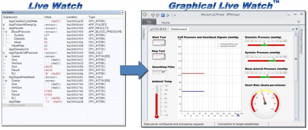 Figure 4 – A screenshot of Silicon Labs Micrium uC Probe. (Source – Silicon Labs Micrium uC Probe).