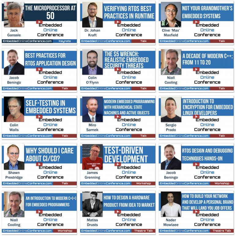 It’s official! The 4th annual Embedded Online Conference is on the calendar for May 18 – 20, 2021. Once again this year, Stephane Boucher and I are joining forces to bring the embedded system industry a top notch event from industry experts around the world!