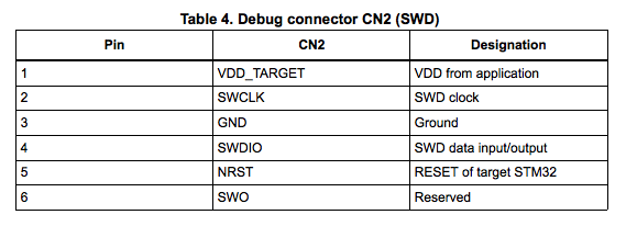 From a quick look through this table do you notice any problems? I’ll give you a hint, look at pin 1 …. it’s VDD_Target, that is the VDD from the application. This pin is NOT providing the target power for a programmer to detect but instead acting as the sense line for the built-in ST-Link! This means that these pins were actually designed to program parts not on the development board!