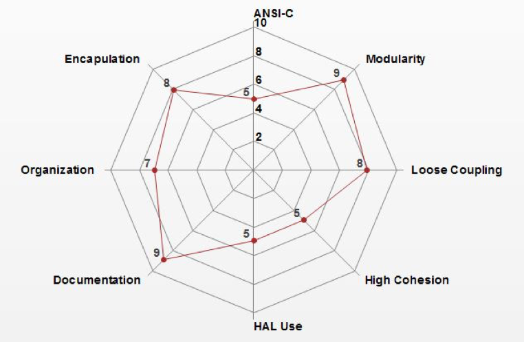 A quick look at the figure above can tell a developer a lot of information. First, we have strengths in documentation and modularity. That’s a great step towards developing portable firmware and we are just getting started. The figure also shows us where our weaknesses are such as code coupling and cohesion.