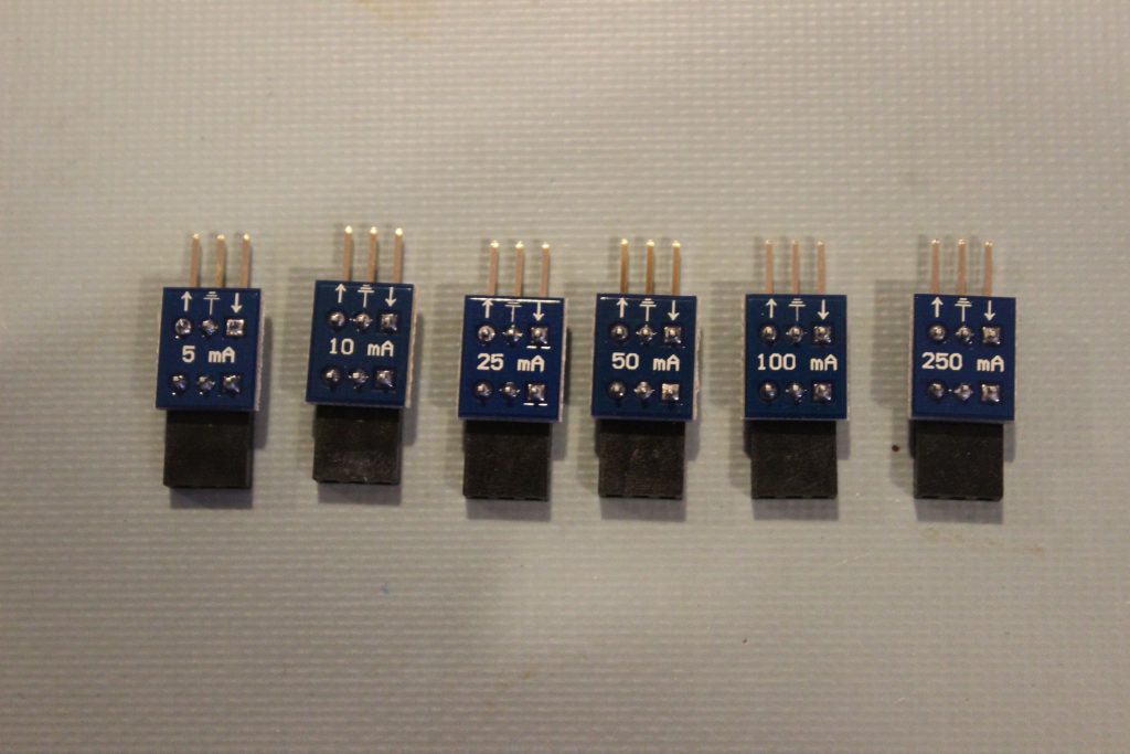 What is great about the power monitor is that the ULINKplus comes with six different current shunts that are designed to provide measurements in the following ranges: 5 mA, 10 mA, 25 mA, 50 mA, 100 mA and 250 mA ranges. If a developer wants to switch ranges, they do need to physically swap out a little 3-pin shunt board which can be seen in the image below: